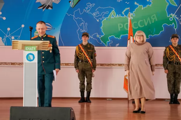 19 февраля в актовом зале КнАГУ прошло торжественное собрание, посвящённое Дню защитника Отечества, на котором присутствовали все сотрудники и курсанты военного учебного центра, руководство университета и факультетов, почётные гости, представлявшие воинские части гарнизона, городское отделение Всероссийского детского-юношеского военно-патриотического общественного движения «ЮНАРМИЯ», кадетские классы школ города. Организатором этого мероприятия выступил военный учебный центр вуза (ВУЦ).