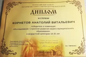 По результатам Всероссийского конкурса Анатолий Корнетов завоевал 3-е место!