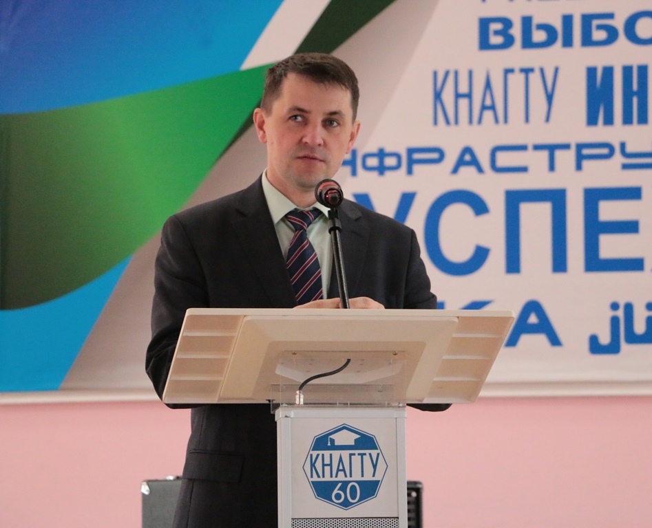 Мероприятие открыл первый проректор университета И.В. Макурин, который поздравил школьников с началом каникул и рассказал, чем живет университет, что его ожидает в ближайшее время, а также о его структуре. По словам И.В. Макурина, «в мире сложилась непростая политическая ситуация, которая способствует укреплению оборонно-промышленного комплекса России. Наши градообразующие предприятия (КнААЗ, АСЗ) имеют хорошие оборонные заказы, специалисты-выпускники вуза востребованы и, как следствие, востребованы студенты – они начинают работать на предприятиях с 3-го курса. Поэтому проблем с трудоустройством у выпускников основных факультетов КнАГТУ не будет». Также проректор упомянул о работе вуза с КНПЗ, о неплохих перспективах трудоустройства в нефтеперерабатывающей сфере.