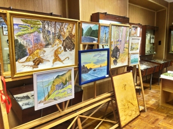 Несмотря на различные техники, в которых работают художники, - Елена Анатольевна творит роспись ткани "холодный батик", а Андрей Вячеславович пишет натуралистические пейзажи маслом, - их объединяет общая тема. У обоих художников на полотнах изображено "живое" - всевозможные цветы у Е.А. Лустиной удивительным образом распускающиеся на обычной ткани, изумительные пейзажи с горами, речками, березками, приморским морем на закате и зарисовками из жизни диких животных нашей дальневосточной тайги.