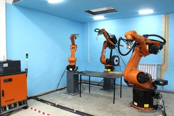 При обучении на данном комплексе слушатели приобретают навыки организации взаимосвязей нескольких совместно работающих роботов, учатся интегрировать технологическое оборудование сторонних производителей в робототехнический комплекс, управлять внешним оборудованием с помощью специализированных программных пакетов.